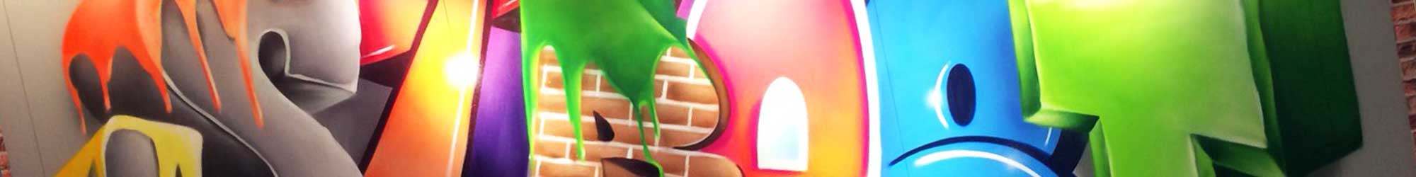 Ons team van professionele kunstenaars beheerst het maken van Graffiti schilderingen tot in de puntjes. Of het nu gaat om het aanbrengen van een reclameschildering, het opfleuren van een bouwschutting, een muurschildering bij u thuis of een sfeerbepalend kunstwerk in kantoor; onze Graffiti artiesten leveren altijd een op maat gemaakt kunstwerk af waar wij zelf ook trots op kunnen zijn.